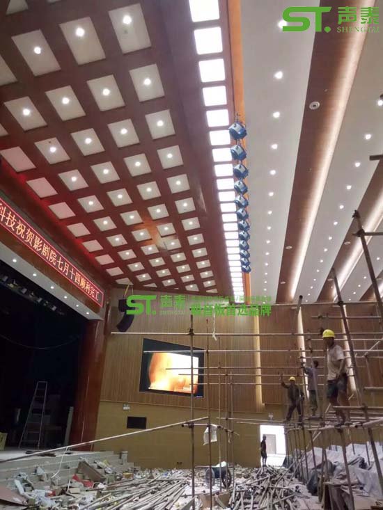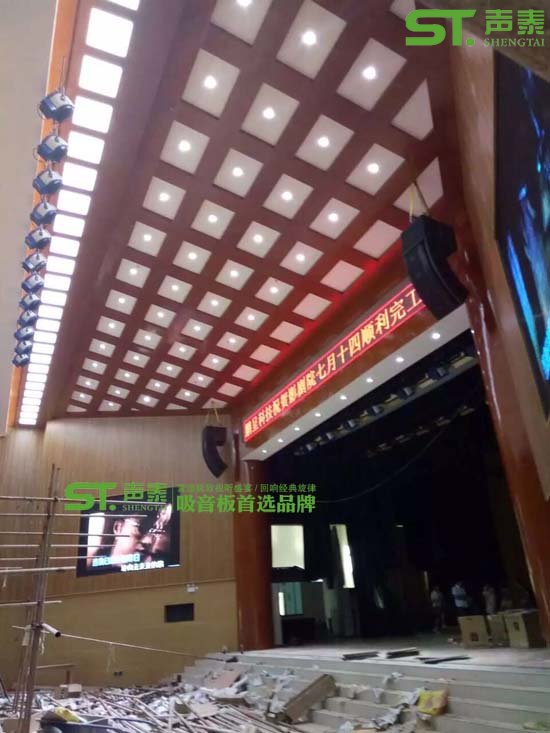 貴州從江歌劇院吸音項(xiàng)目經(jīng)過甲方多倫篩選和來工廠實(shí)地考察,由于我司各方面都表現(xiàn)優(yōu)秀,并且符合工地的各項(xiàng)指標(biāo)的要求!最終甲方與我司簽訂合同。該項(xiàng)目共采用28/4防火槽木吸音板2600余方,目前工地正在緊急安裝中!明天(2016/7/14)安裝完畢并正式營(yíng)業(yè)