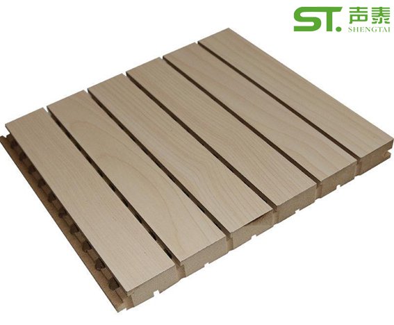槽孔吸音板是一種在密度板的正面開槽、背面穿孔的狹縫共振吸聲材料,既有木裝飾本身的裝潢效果,又有良好的吸聲性能。一般用于演播室吸音、KTV廂房吸音、機場吸音、會議室吸音、寫字樓吸音、影院吸音、室內(nèi)體育場館吸音等娛樂建筑裝飾聲效施工。