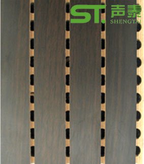 (1)木質(zhì)吸音板分槽木吸音板是一種在高密度板的正面開(kāi)槽、背面穿孔的狹縫共振吸聲材料;通常用于墻面裝飾和吸聲降噪。