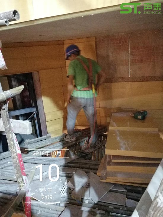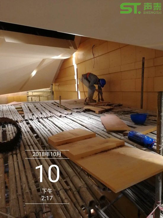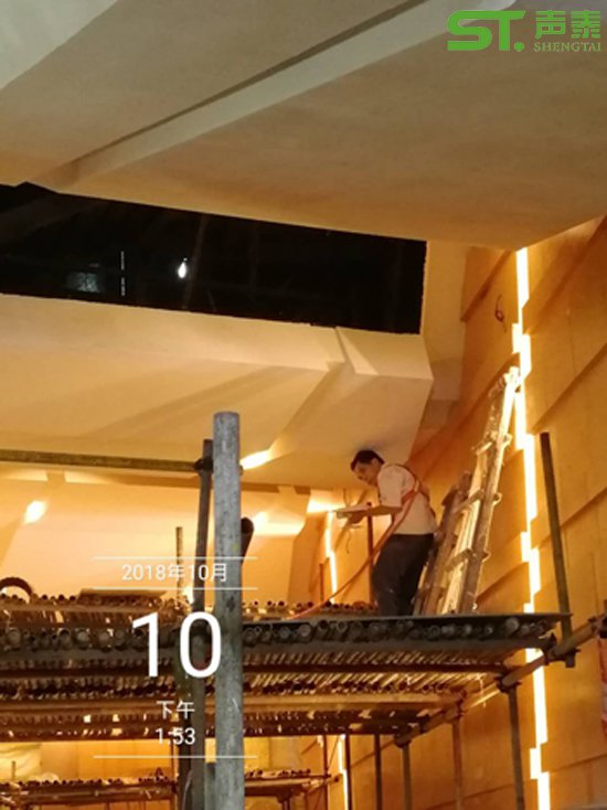 聲泰【工程部】施工團隊演藝中心mls木質(zhì)擴散體安裝施工現(xiàn)場