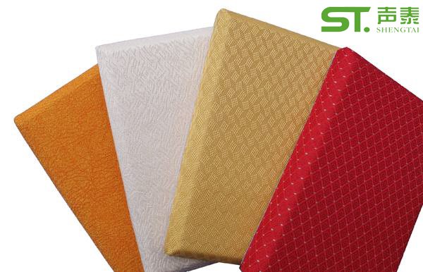布藝軟包吸音板是經過塑膠邊框、樹脂固化邊框、鋁合金邊框或木質邊框內放置不燃的經微孔化處理的特制吸音棉板,外包防火吸音布特制而成具有時尚外觀和高吸聲性能的軟包吸音板。布藝吸音軟包采用進口國際品牌歐文斯科寧經微孔化處理的特制不燃高密度玻纖棉為基材。