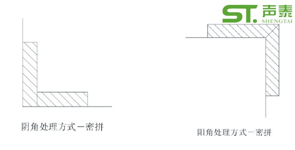 2.外墻角(陽角),45°密拼(吸音板現(xiàn)場裁切)
