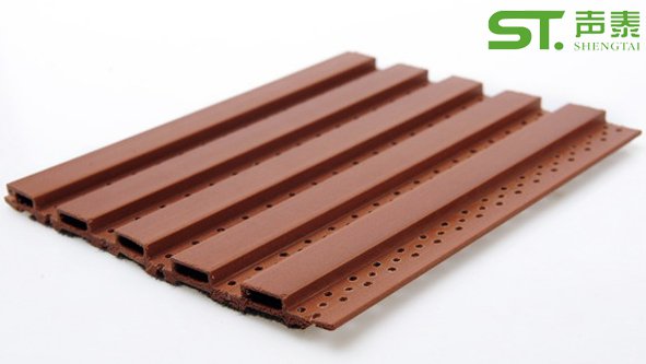 木質(zhì)吸音板分槽木吸音板和孔木吸音板兩種,槽木吸音板是一種在密度板的正面開(kāi)槽、背面穿孔的狹縫共振吸聲材料;孔木吸音板是一種在密度板的正面、背面都開(kāi)圓孔的結(jié)構(gòu)吸聲材料。兩種吸音板常用于墻面和天花裝飾。