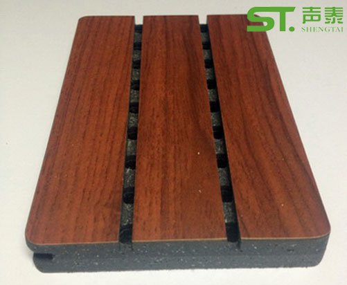 基材: 專利技術(shù)生產(chǎn)的無機(jī)材料,提供大部分的技術(shù)性能是以高嶺土、硅灰石、硅藻土、膨脹珍珠巖等為主要原料,導(dǎo)電瓷土粉、導(dǎo)電粉等為導(dǎo)電材料,增強(qiáng)纖維(無紡布)的產(chǎn)品增加材料,經(jīng)攪攔、擠壓成型的經(jīng)化合反應(yīng)而成的一種高強(qiáng)度材料,具有防火、防靜電、防水、防潮、防蛀、防霉、抗菌特性。其吸聲原理一是材料本身內(nèi)形成多孔結(jié)構(gòu),達(dá)到一定的吸聲效果,其二是成品板上通過開槽、鉆孔等形成狹縫形成共振結(jié)構(gòu),進(jìn)一步強(qiáng)化吸聲效果。