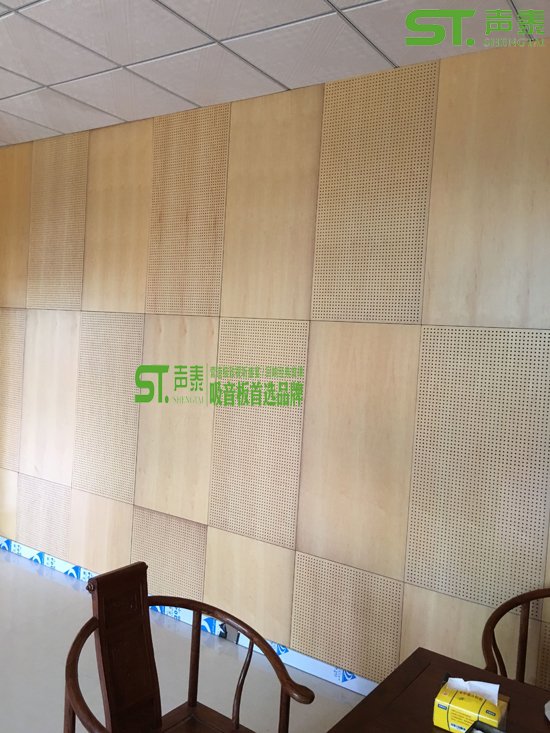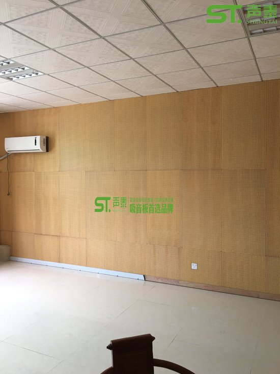 以下是我司承接某公司辦公洽談室的吸音裝修,墻面所采用的是木飾面孔木吸音板、木飾面裝飾板、天花所采用的是礦棉吸音板,該辦公洽談室沒做吸音之前混響時(shí)間高達(dá)8秒,經(jīng)過我司聲學(xué)裝飾處理之后該室內(nèi)混響時(shí)間2秒左右!接下來展示一下木紋飾面吸音板與裝飾板完美搭配的安裝效果圖!
