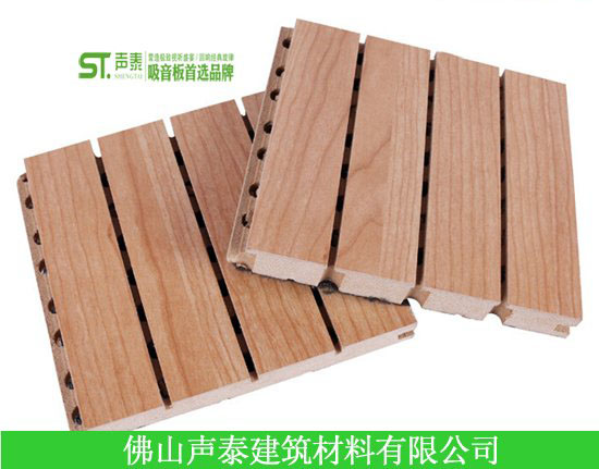 木質吸音板由飾面、芯材和吸音薄氈組成。芯材為16mm或18mm厚的進口MDF板材。芯材的正面貼有飾面,背面粘貼德國科德寶黑色吸音薄氈。根據客戶的要求,飾面有各種實木貼面、進口烤漆面、油漆面和其它飾面,木質吸音板常用于墻面和天花裝飾