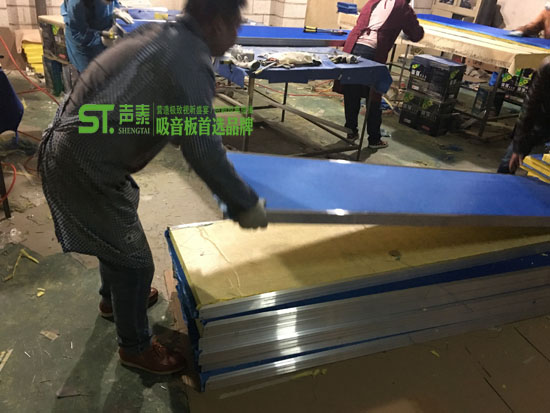 貴州某籃球館a級防火天花平板空間吸聲體目前正在佛山聲泰軟包車間、吸聲體車間火熱生產(chǎn)中!