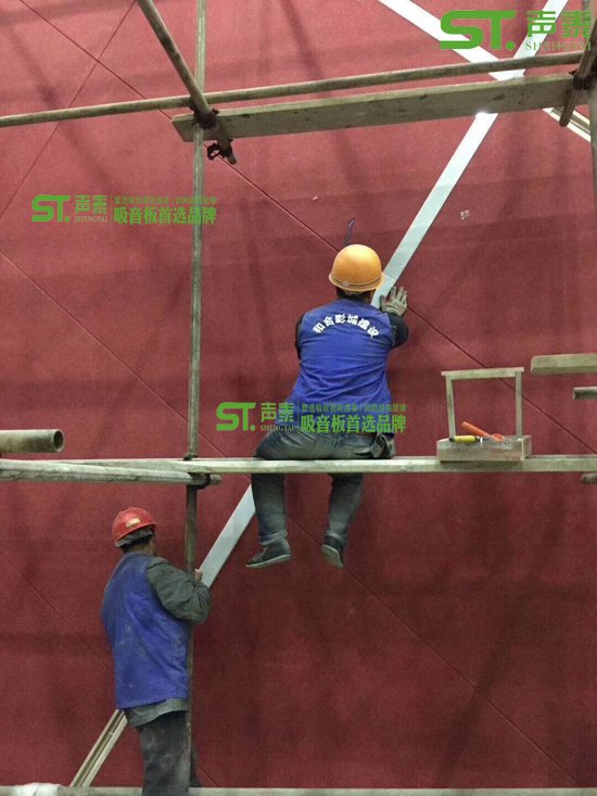 電影院聚酯纖維吸音板施工安裝現(xiàn)場(chǎng)