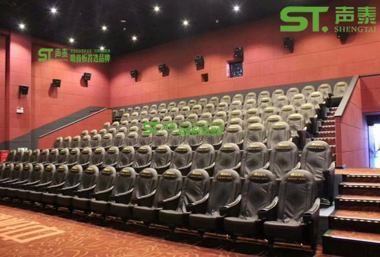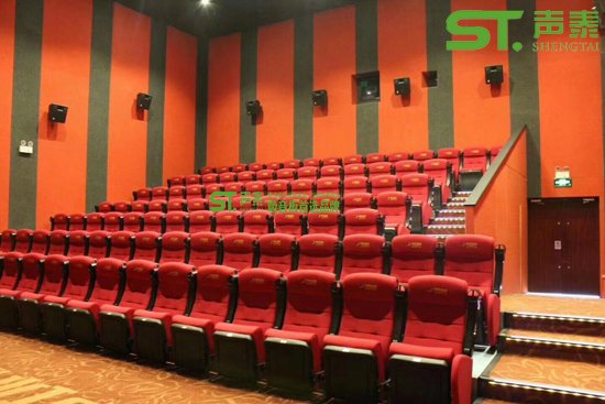 該影院項(xiàng)目位于廣西北海,共使用B1級(jí)聚酯纖維吸音板2800平方米(2420*1220*9)