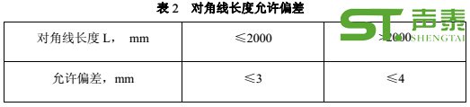 3.2.2 隔聲門對(duì)角線長(zhǎng)度允許偏差應(yīng)符合表2的規(guī)定。