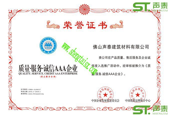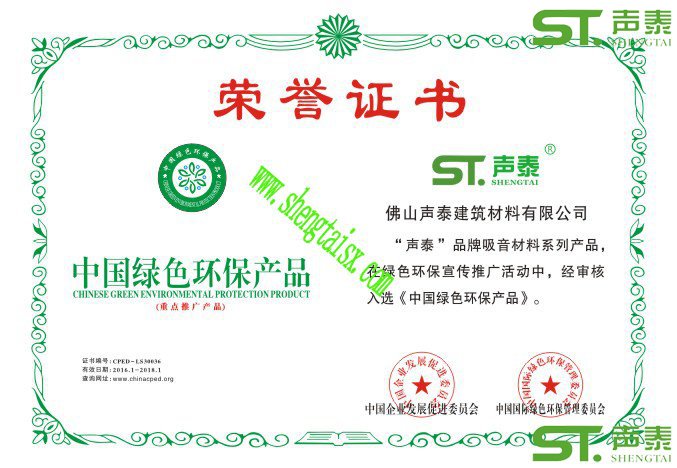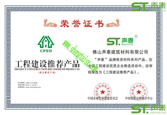 聲泰公司榮譽證書