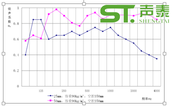 玻纖板相同厚度和空腔時(shí),不同容重的吸聲特性曲線
