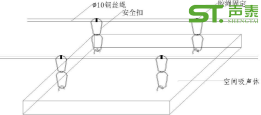 (3) 空間吸聲體通過吊環(huán)與鋼絲繩直接掛在安全扣上。