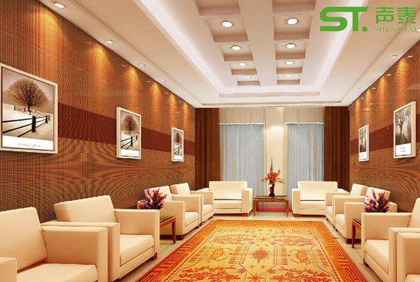 置一些吸音涂料,吸音的面積要有1-1.5m寬,2m左右的高度。吸音質(zhì)料可用厚絨布打皺像窗簾一樣平常天然吊在側(cè)墻,也可用棉布包裹音棉,做成一塊塊的吸音體固定在墻壁上,或吊掛羊毛毯畫。