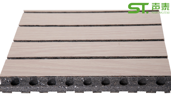 槽木吸音板是一種在密度板的正面開槽、背面穿孔的狹縫共振吸聲材料。常用于墻面或天花裝飾。15mm或18mm厚的MDF板材。木質(zhì)吸音板通常用密度為720kg/cu.m的二級MDF 板料做成,亦可根據(jù)用戶要求使用一級的MDF板料。
