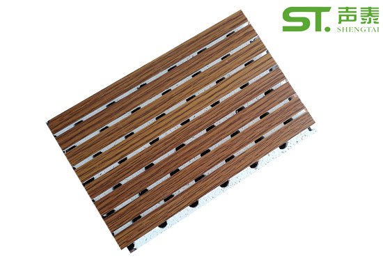 吸音原理:槽木吸音板通過表面槽孔設(shè)計(jì),利用狹縫共振原理吸收中高頻噪音,減少回聲與混響,提升聲音清晰度。