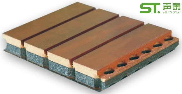 專利技術生產(chǎn)的陶鋁復合吸音板,其吸音原理一是在材料本身內(nèi)形成多孔結(jié)構,達到一定的吸聲效果,其二是在成品板上通過開糟、鉆孔形成穿孔板。