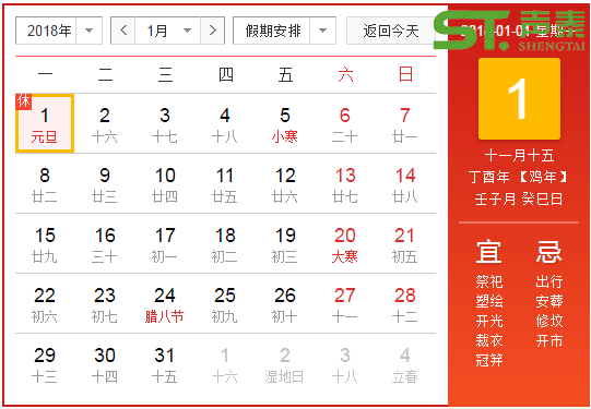 一、 元旦放假時間為2017年12月31日至1日元旦節放假,共2天,1月2日(周二)正常上班。